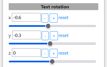 In the "Text rotation" section, set rotation x to -0.8.