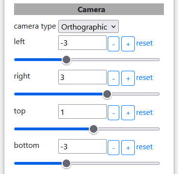 Set camera type to "orthographic". Then set the fields "left", "right", "top" and "bottom" as shown in image below.